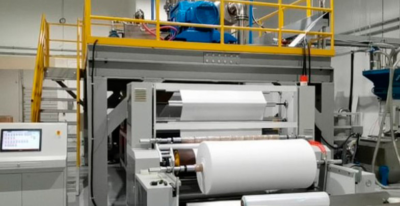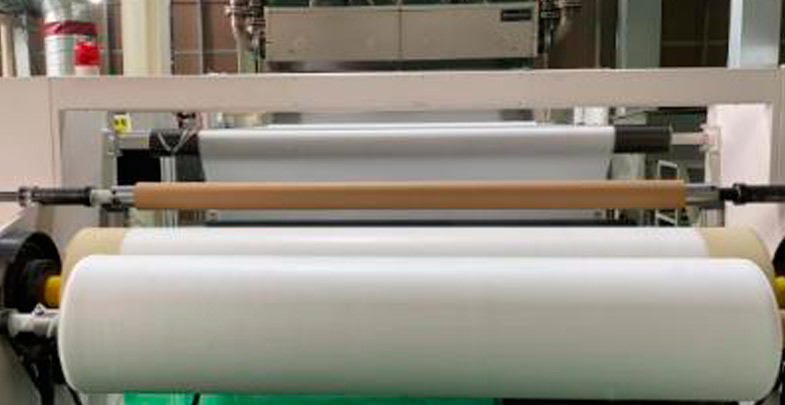 過濾用熔噴是以PP或其他聚合物為主要原料,采用熔噴技術制造的。聚合物原料在擠出機中加熱和熔化,擠出機提供壓力,將熔融聚合物和纖維推向傳送帶。為了達到高過濾效率性能,隨后應以不同的方式在成型的熔噴織物上充注靜電。
